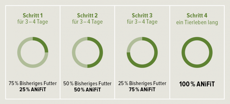 25 % bisheriges Futter, 75 % ANiFiT-Futter - Schritt 4 (ein Tierleben lang): 100 % ANiFiT-Futter